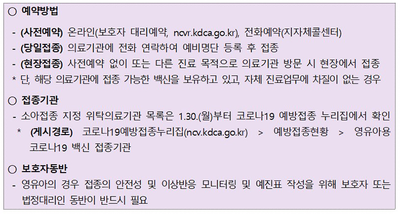 2월 13일부터 6개월~4세 영유아를 대상으로 코로나 19 백신의 당일 접종을,