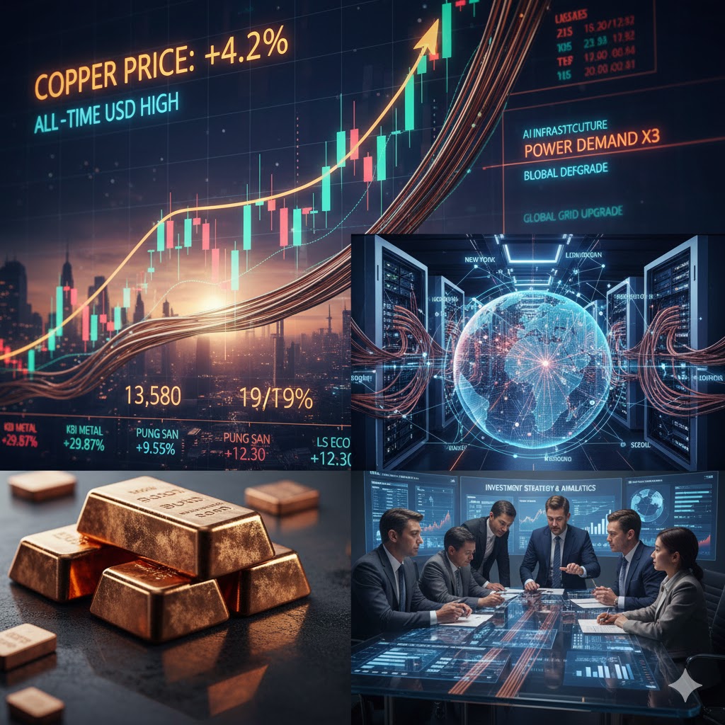 [전문분석] 구리 13,500달러 돌파의 이면: AI 인프라가 초래한 30만 톤의 공급 부족 전망