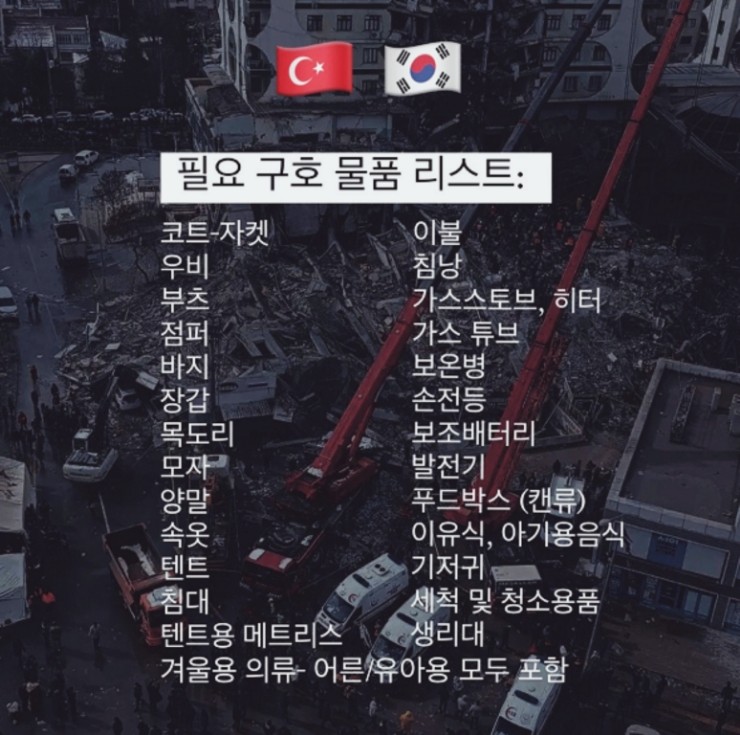 현재 튀르키예에 필요한 구조물품